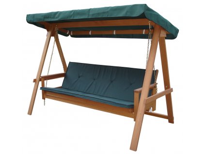 Masivní zahradní houpačka z tropického dřeva MERANTI. Podušky a stříška v zelené barvě - součást balení. Velmi kvalitní produkt!