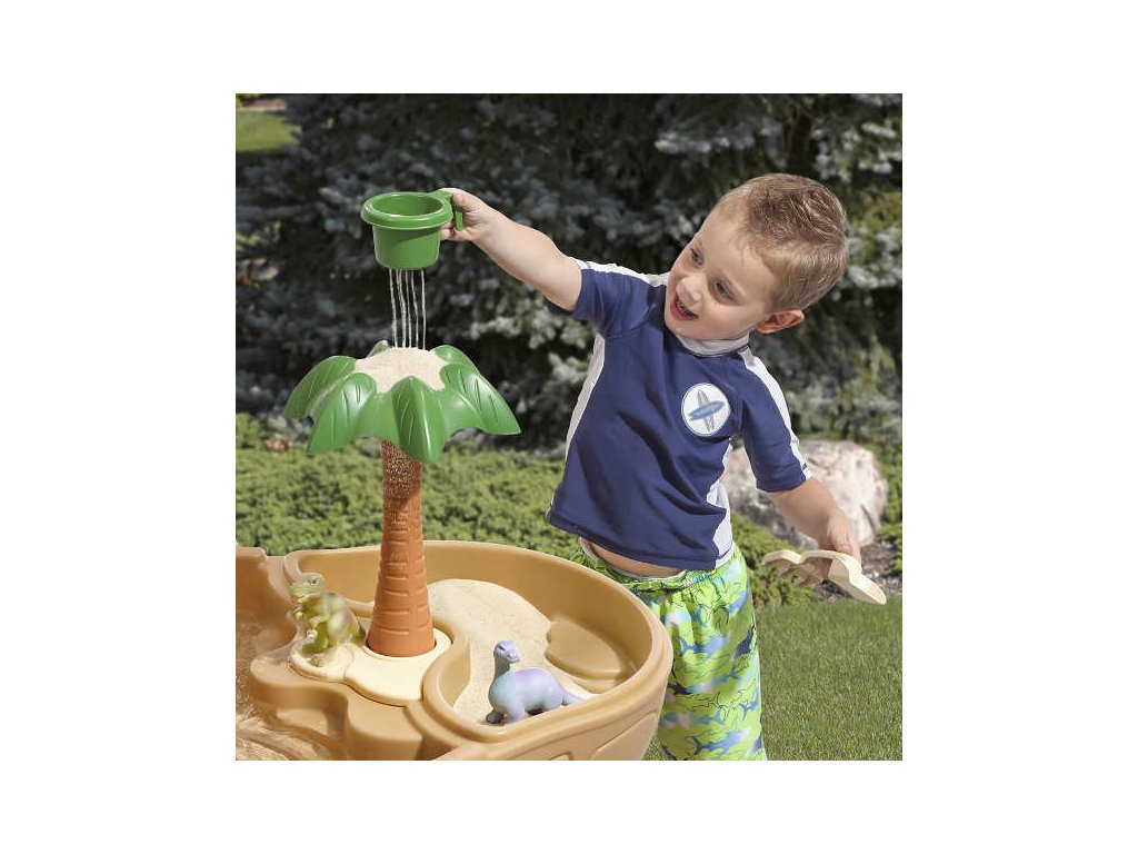 - uprostřed stolu krásná palma, nalijte vodu na palmu a spusťte déšť na dinosaury