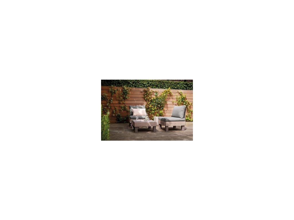 Modulární křeslo pro set ELEMENTS SIGNATURE, kterým můžete set ELEMENTS ještě více rozšířit, nebo použít samostatně. Set ELEMENTS Vám umožní uspořádat si moderní venkovní posezení dle Vašich představ. A když budete občas potřebovat více křesel místo sofa, nebo jiné uspořádání, není to pro set problém. Díky chytrému modulárnímu systému, který nabízí mnoho možných konfirgurací, jednoduše přemístíte a zacvaknete jednotlivé prvky na požadované místo. Pro ještě větší pohodlí jsou součástí soupravy 9 cm vysoké podušky a opěrky. Podušky jsou z příjemného materiálu polybavlna a spodní část je z netkané textílie s protiskluzovým tečkami. Pevný lisovaný plast, z kterého je souprava vyrobena, je odolný vůči nepříznivým povětrnostním podmínkám a UV záření.