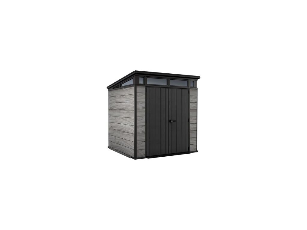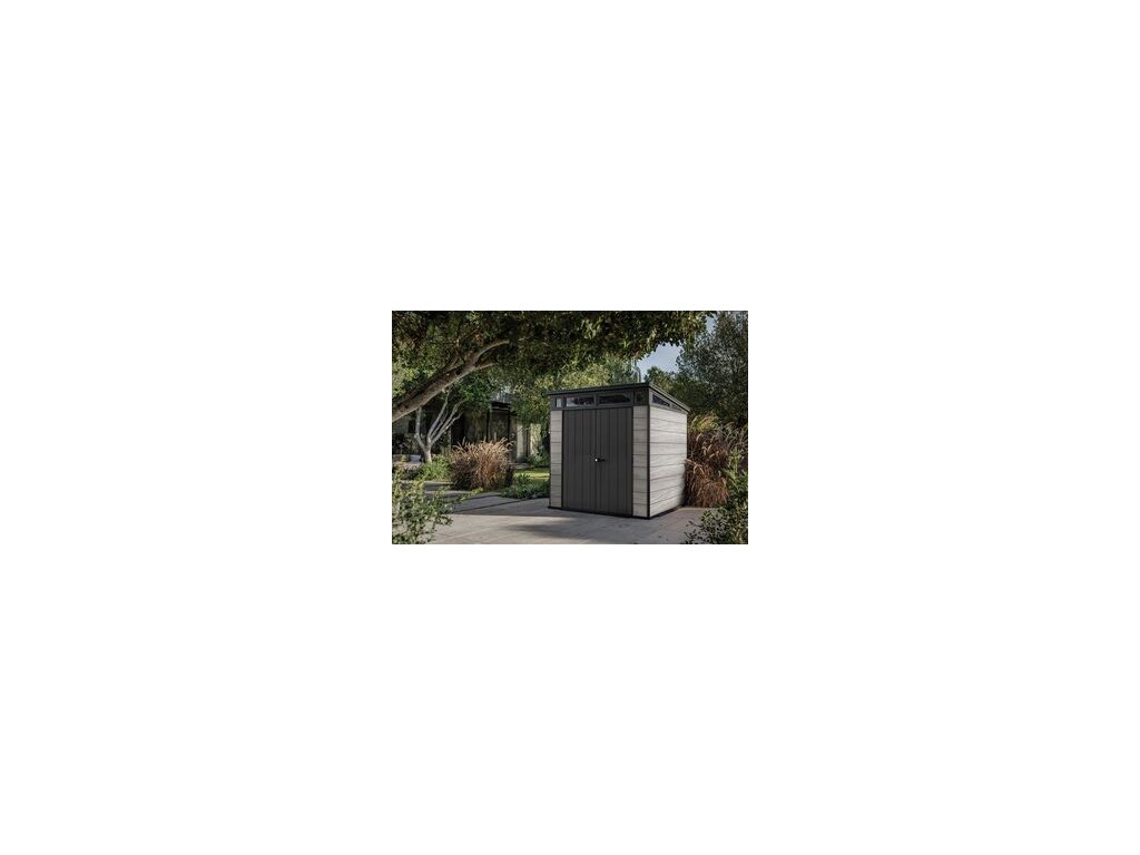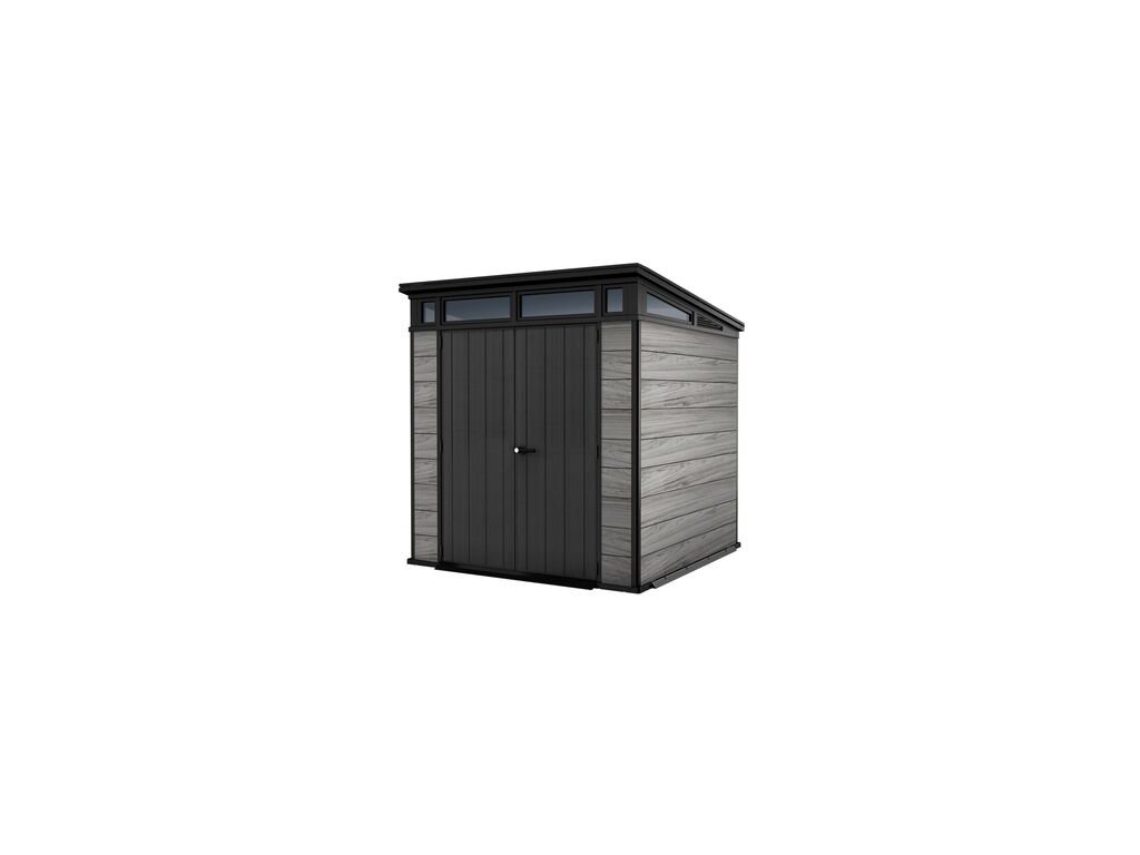 Bezúdržbový domek PENT 7x7 je vyroben z jedinečného materiálu DECOCOAT, který je inspirován moderním vzhledem v imitaci dřeva. Domek má robustní konstrukci s dvojitými stěnami a kovové výztuhy. Je také vybaven pevnou designovou střechou, širokými dvojitými dveřmi a podlahou pro náročné použití s nosností 150kg na m2. Domek je ideální nejen na uschovávání nářadí a zahradních doplňků, ale také na sekačku nebo grill. Jeho hlavní výhody jsou stabilní, zpevněná ocelová konstrukce, pevná střecha a široké dvojité dveře. Všechny domky Keter jsou vybaveny vysoce odolnou podlahou. Zatížení střechy až 150 kg/m2, odolnost vůči větru do 145 km/hod (platí v případě ukotvení). Rozměr dveří: 140x182 cm výhody: