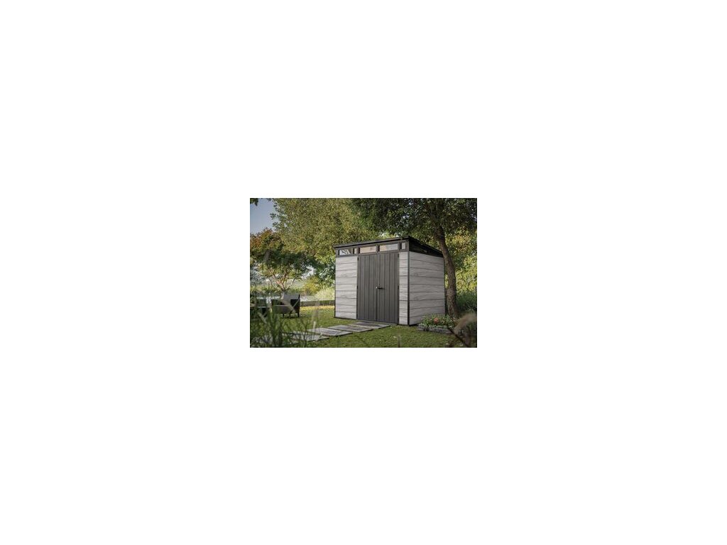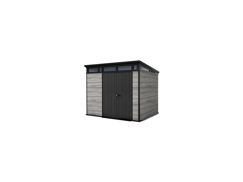 Bezúdržbový domek PENT 9x7 je vyroben z jedinečného materiálu DECOCOAT, který je inspirován moderním vzhledem v imitaci dřeva. Domek má robustní konstrukci s dvojitými stěnami a kovové výztuhy. Je také vybaven pevnou designovou střechou, širokými dvojitými dveřmi a podlahou pro náročné použití s nosností 150kg na m2. Domek je ideální nejen na uschovávání nářadí a zahradních doplňků, ale také na sekačku nebo grill. Jeho hlavní výhody jsou stabilní, zpevněná ocelová konstrukce, pevná střecha a široké dvojité dveře. Všechny domky Keter jsou vybaveny vysoce odolnou podlahou. Zatížení střechy až 150 kg/m2, odolnost vůči větru do 145 km/hod (platí v případě ukotvení). Rozměr dveří: 140x182 cm výhody: