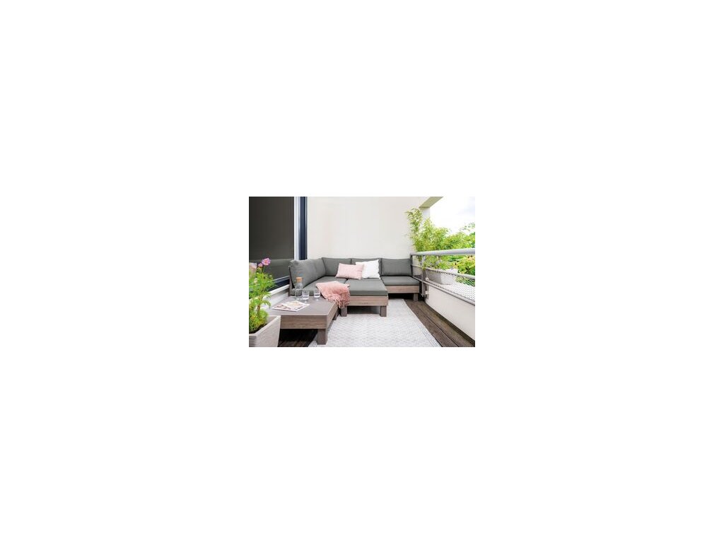 Pro ještě větší pohodlí jsou součástí soupravy 9 cm vysoké podušky a opěrky. Podušky jsou z příjemného materiálu polybavlna a spodní část je z netkané textílie s protiskluzovým tečkami. Pevný lisovaný plast, z kterého je souprava vyrobena, je odolný vůči nepříznivým povětrnostním podmínkám a UV záření.