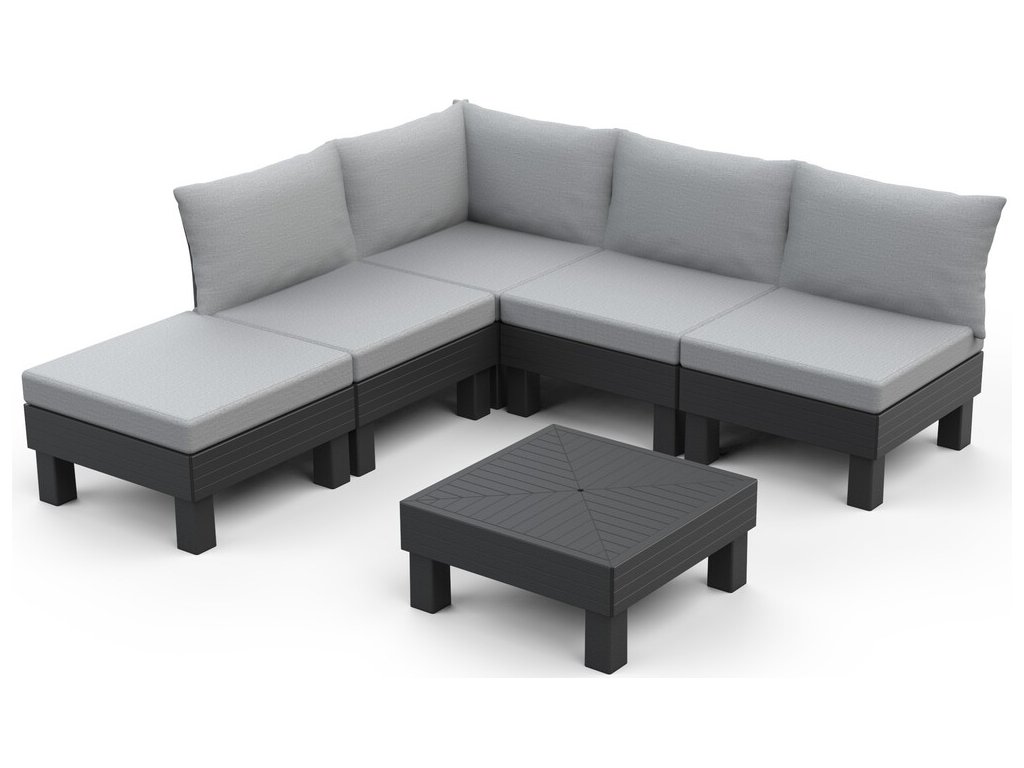Pro ještě větší pohodlí jsou součástí soupravy 9 cm vysoké podušky a opěrky. Podušky jsou z příjemného materiálu polybavlna a spodní část je z netkané textílie s protiskluzovým tečkami. Pevný lisovaný plast, z kterého je souprava vyrobena, je odolný vůči nepříznivým povětrnostním podmínkám a UV záření.