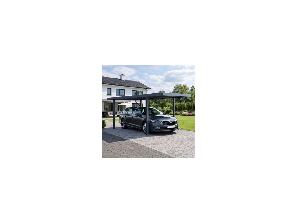 Ocelový přístřešek na auto METTA o rozměrech 5,3x3,2 metry představuje ideální způsob zastřešení parkovacího místa. Vzhledem k parametrům může stejně dobře sloužit jako pergola pro Vaše venkovní posezení. Pevná a stabilní konstrukce v antracitové barvě RAL 7016, v matné povrchové úpravě se hodí do každého prostoru, není zapotřebí vrtat do stěny. Přístřešek je vyroben z vysoce kvalitní oceli, která je ošetřena práškovou barvou, což zaručuje odolnost vůči povětrnostním vlivům. Každý sloupek má rozměry 96x96 mm.