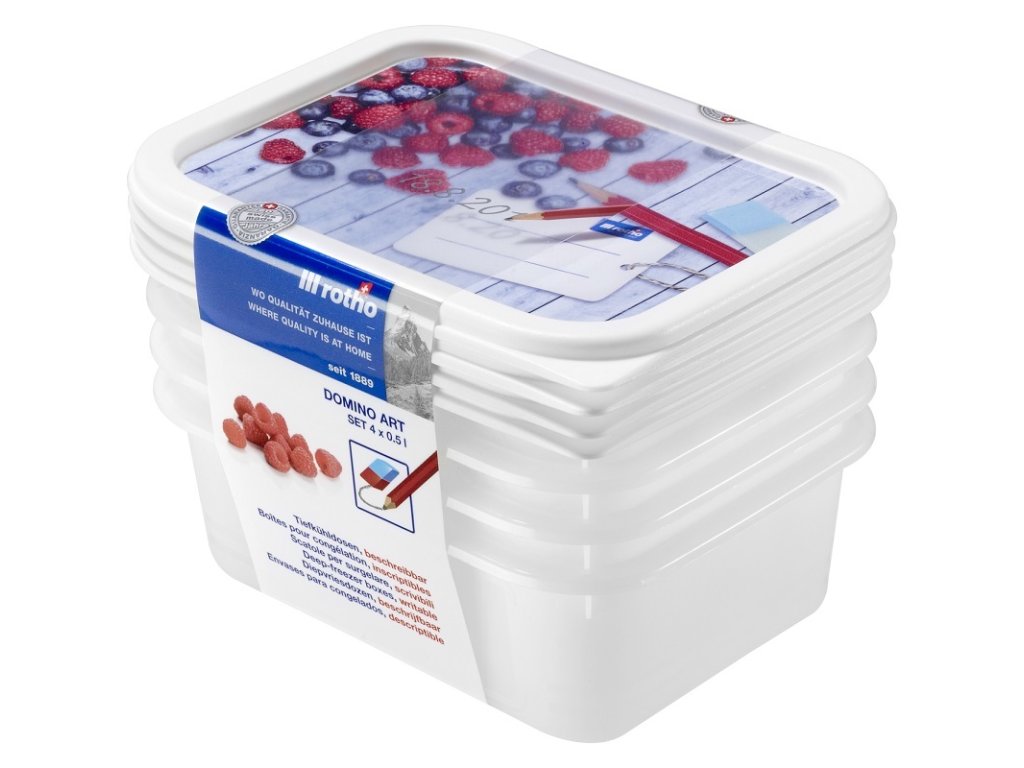 › Dům a zahrada › Domácnost › Skladování potravin › DOMINO sada dóz do mrazničky 4 x 0.5 L