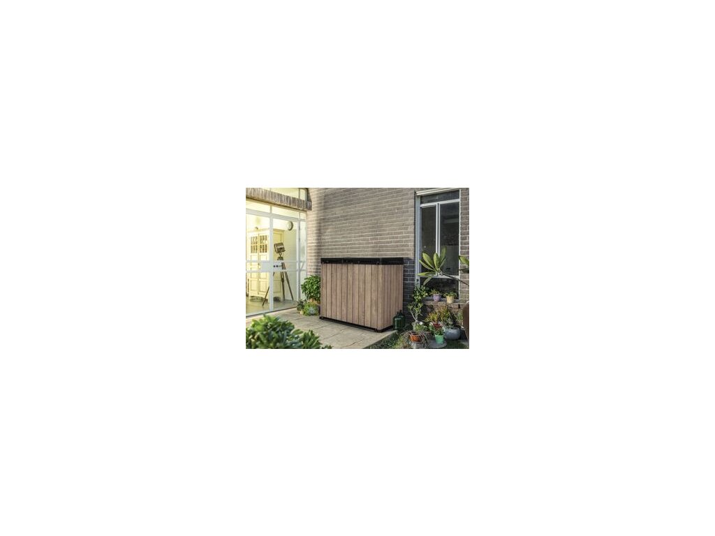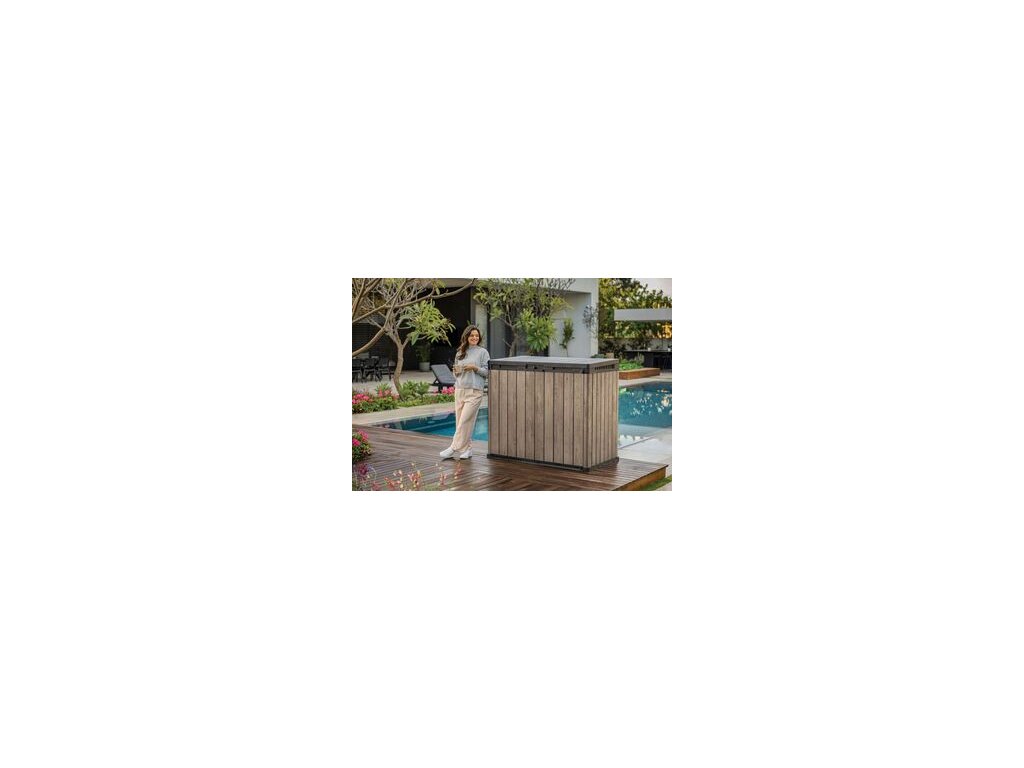 Designová, plastová skříň z řady DECO HORIZONTAL STORE IT OUT v provedení ASHWOODdisponuje úložným prostorem o objemu 1 150 L. Skříňka umožňuje pohodlně uložit vše, co chcete mít po ruce na Vaší zahradě. Ideální pro uschování zahradního nářadí, zahradních doplňků nebo sportovního vybavení. Je možné do ní také uschovat popelnice. Otevírací střecha a dvojité dveře umožňují snadný přístup do interiéru pro pohodlné ukládání a snadné vkládání a vyjímání předmětů. Skříňka se vyznačuje jednoduchým a elegantním designem a také strukturou povrchu připomínající dřevo. Kvalitní kompozitní materiál EVOTECH i na dotek připomíná dřevo, ale je pevnější než samotné dřevo. Vysoce kvalitní plastové materiály zajišťují životnost výrobku po mnoho let.