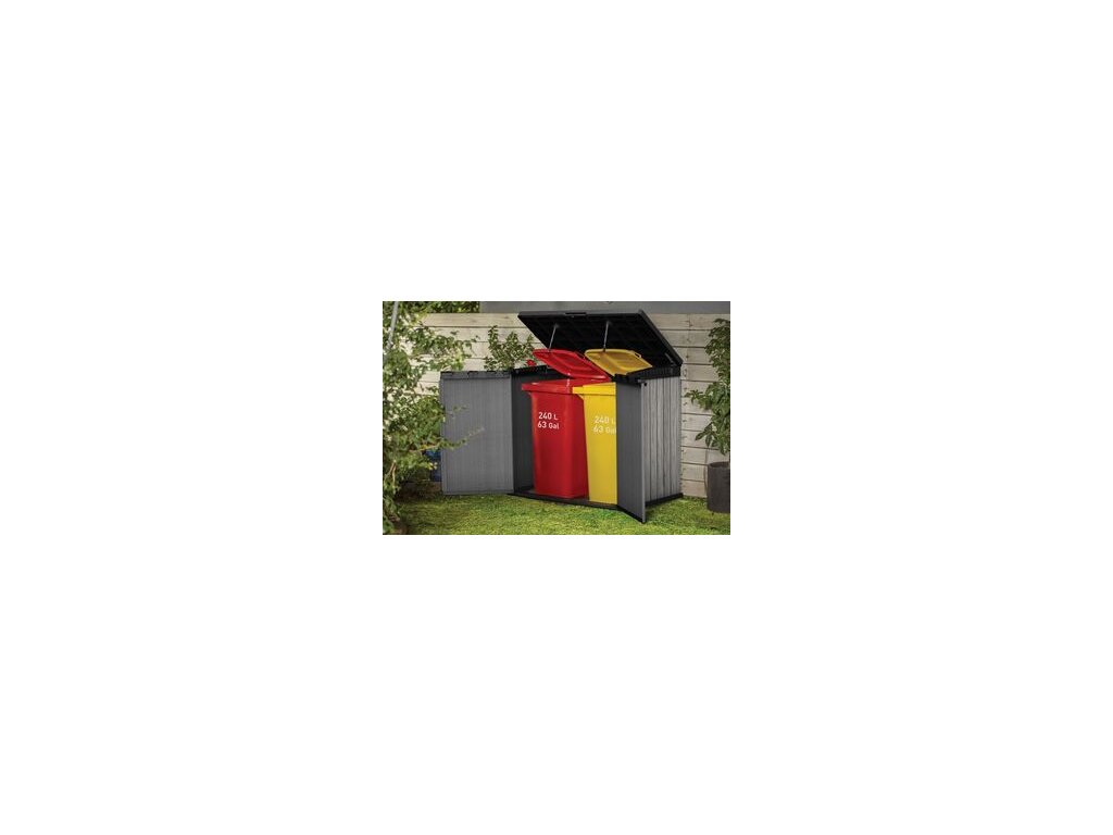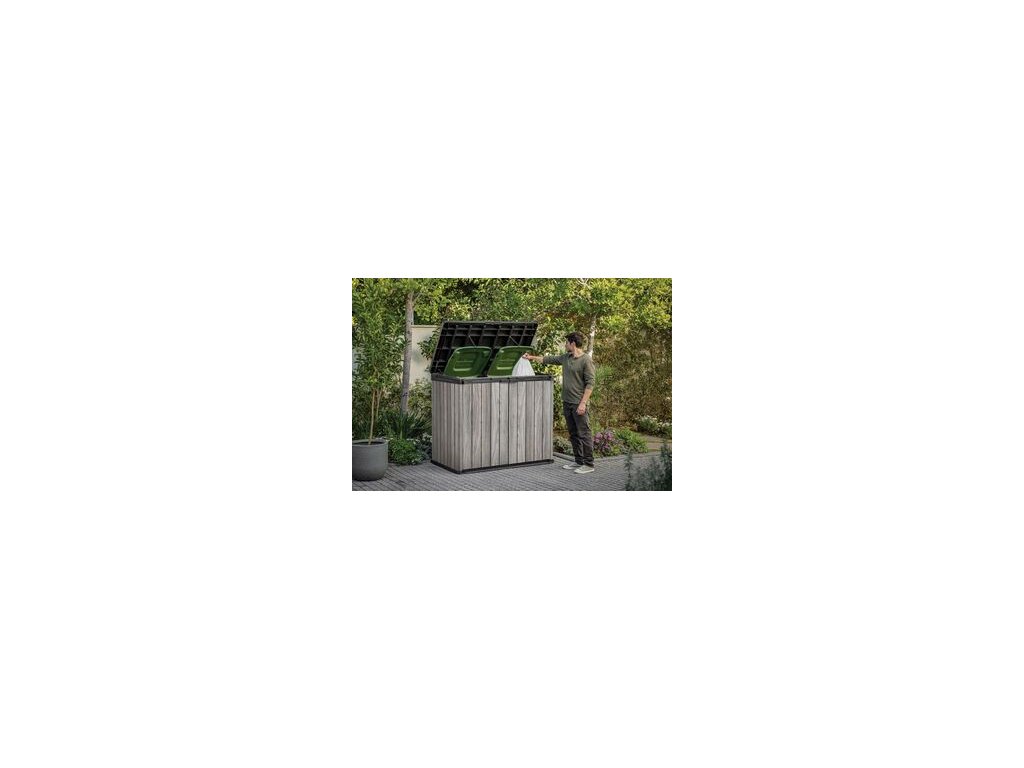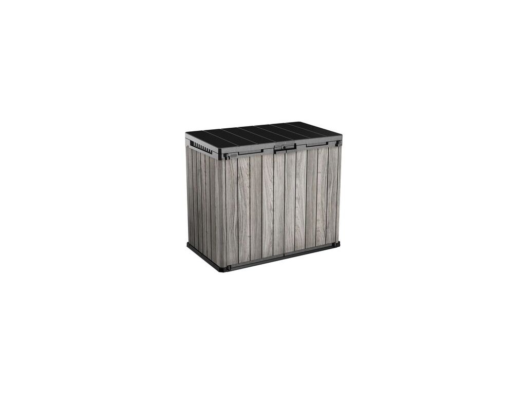 Designová, plastová skříň z řady DECO HORIZONTAL STORE IT OUT v provedení STORM GREY disponuje úložným prostorem o objemu 1 150 L. Skříňka umožňuje pohodlně uložit vše, co chcete mít po ruce na Vaší zahradě. Ideální pro uschování zahradního nářadí, zahradních doplňků nebo sportovního vybavení. Je možné do ní také uschovat popelnice. Otevírací střecha a dvojité dveře umožňují snadný přístup do interiéru pro pohodlné ukládání a snadné vkládání a vyjímání předmětů. Skříňka se vyznačuje jednoduchým a elegantním designem a také strukturou povrchu připomínající dřevo. Kvalitní kompozitní materiál EVOTECH i na dotek připomíná dřevo, ale je pevnější než samotné dřevo. Vysoce kvalitní plastové materiály zajišťují životnost výrobku po mnoho let.