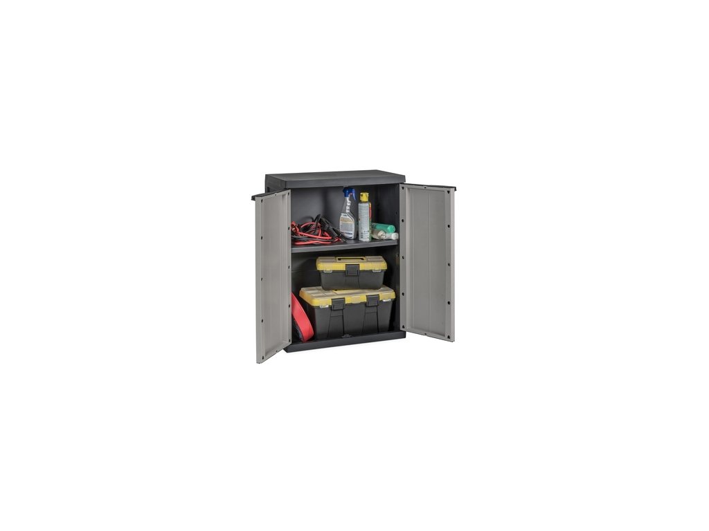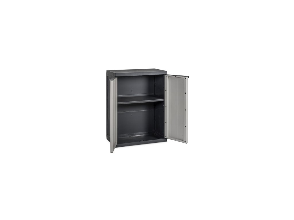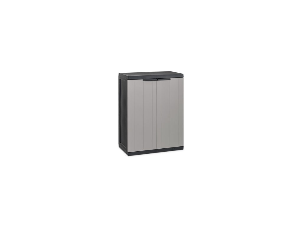 Praktická plastová dvoukřídlá skříňka BIOS MIDI LOW v barevné kombinaci šedé a černé barvy.